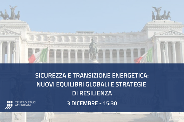 Il prossimo 3 dicembre alle ore 15, il Centro Studi Americani ospiterà l'evento "Sicurezza e transizione energetica: nuovi equilibri globali e strategie di resilienza" SALUTI ISTITUZIONALI Roberto Sgalla - Direttore ...