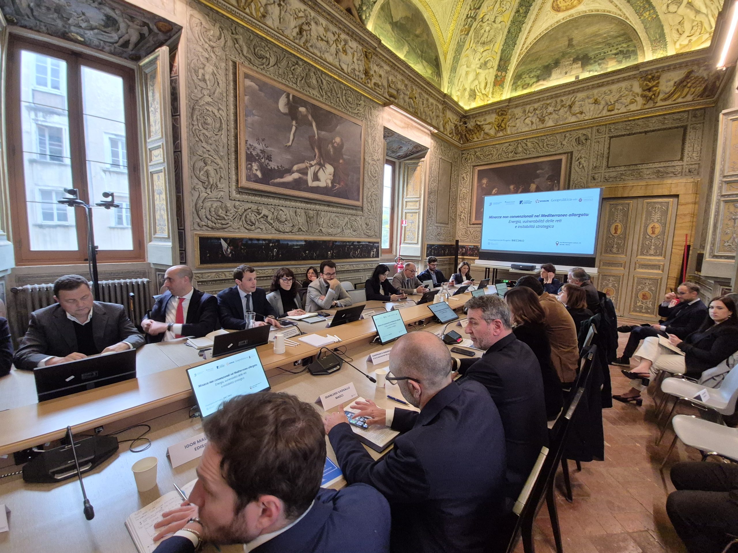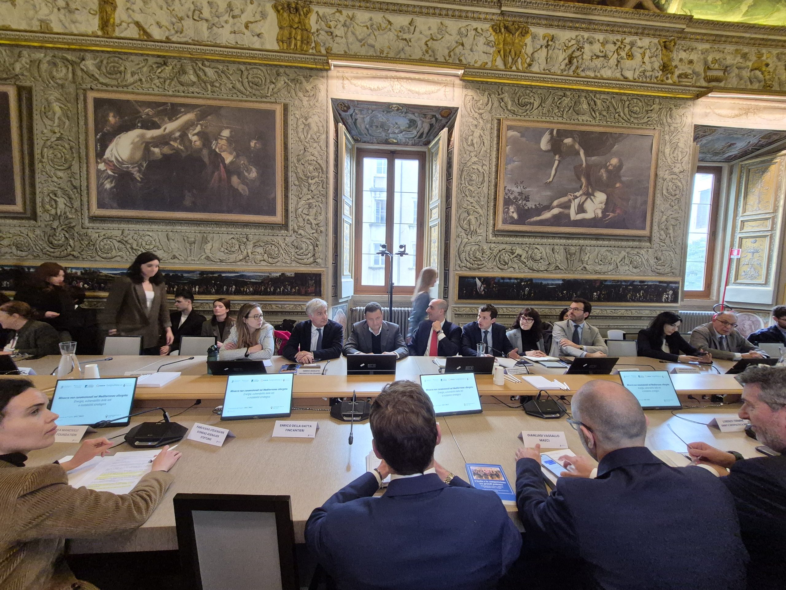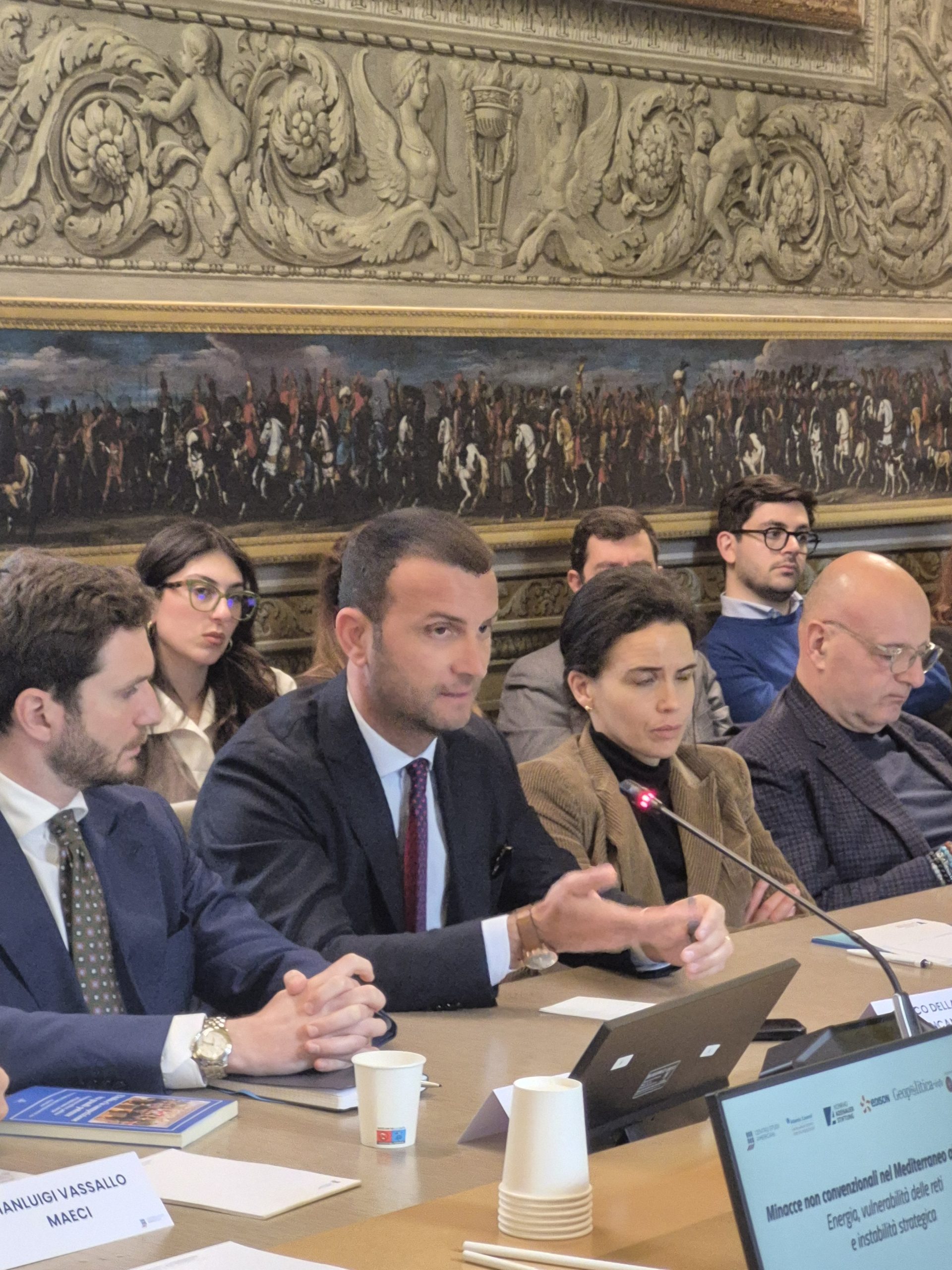 Ha presentato il progetto Matteo Mazziotti di Celso – Institut de recherche stratégique de l’école militaire e geopolitica.info. Hanno discusso e commentato i contenuti: Gianfranco Annunziata – Stato Maggiore della Difesa, Alessia Chiriatti – IAI, Enrico Della Gatta – Fincantieri, Emidio Diodato – Università per Stranieri di Perugia, Gianluigi Vassallo – MAECI, Igor Malgieri – Edison, Andrea Manciulli – MedOr Italian Foundation, Karim Mezran – Atlantic Council, Cecilia Emma Sottilotta – Università per stranieri di Perugia. Ha moderato Gabriele Natalizia – Sapienza Università di Roma, Geopolitica.info
