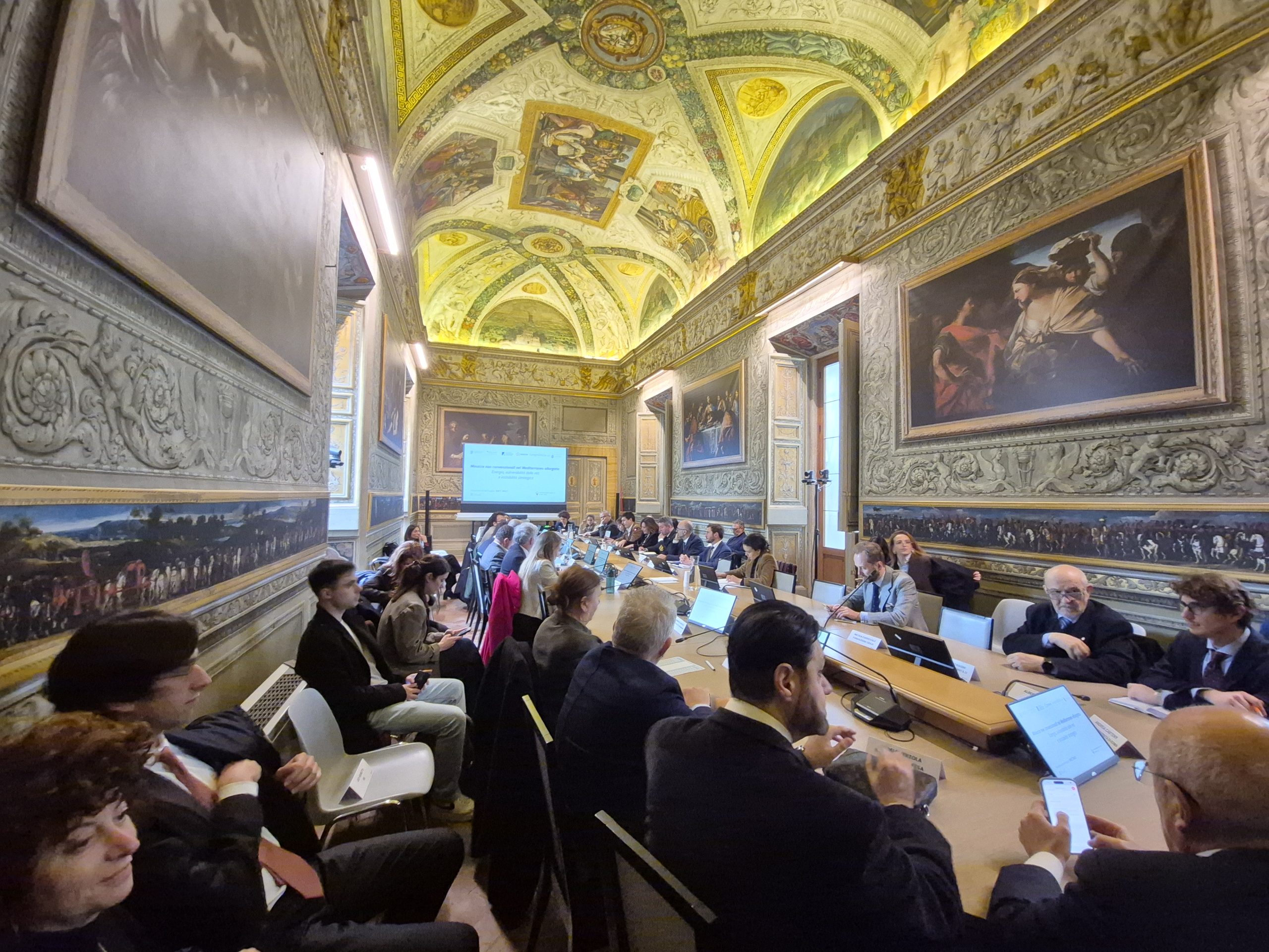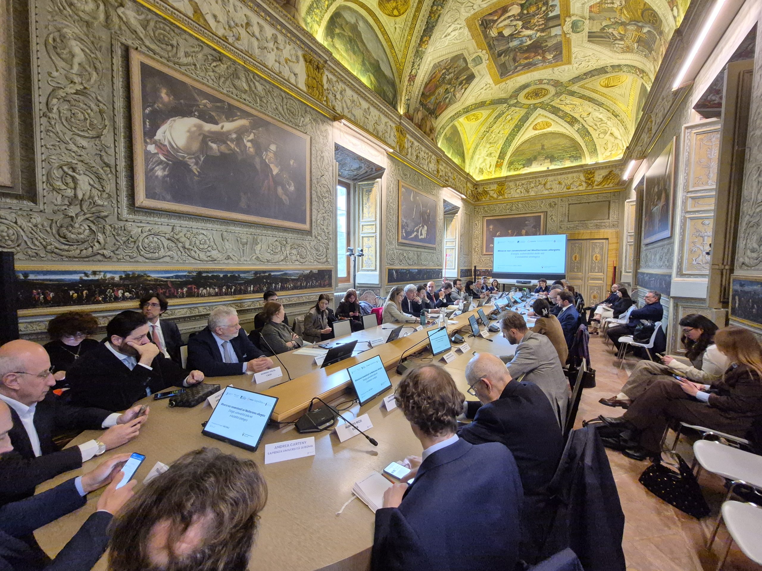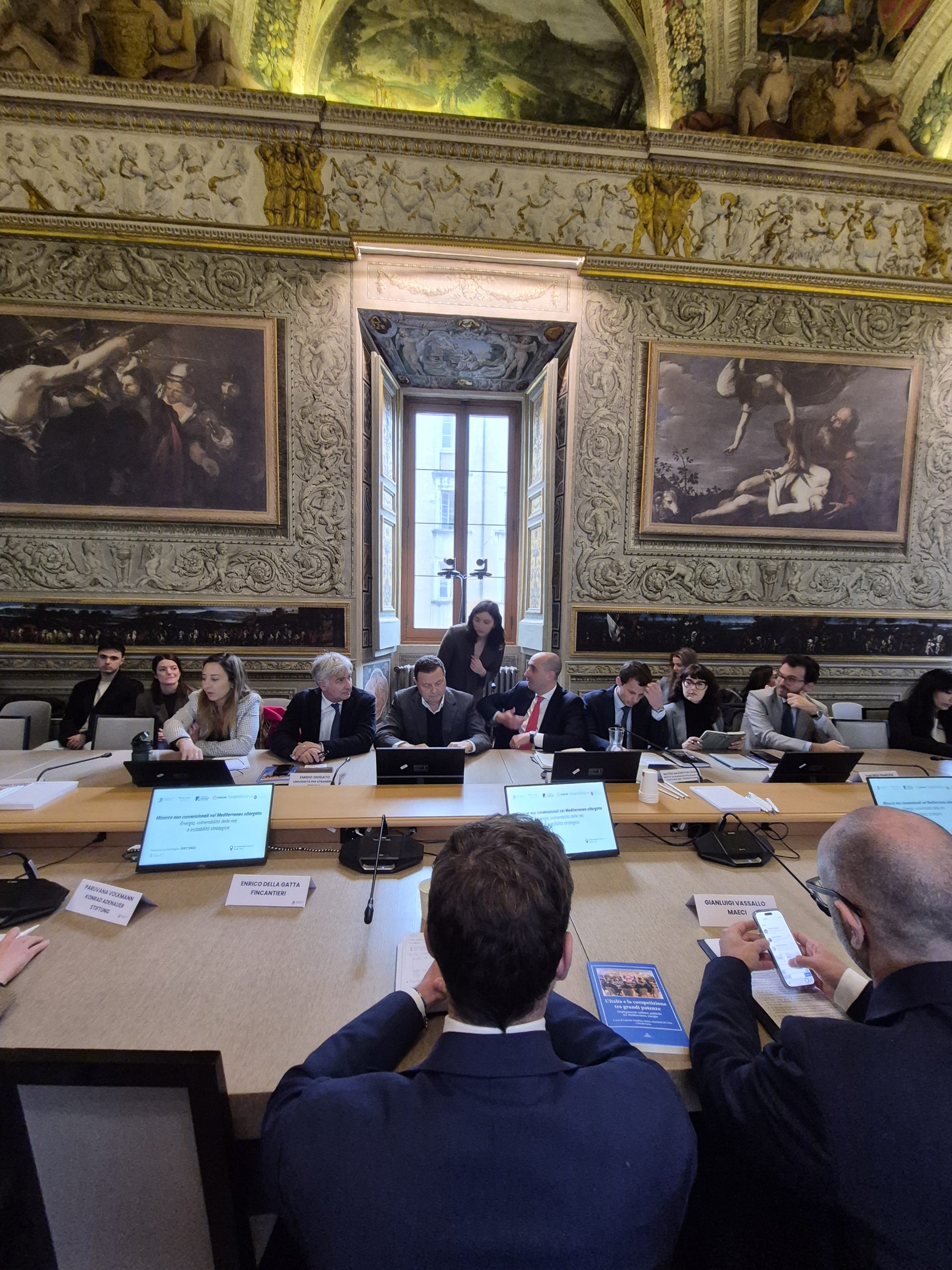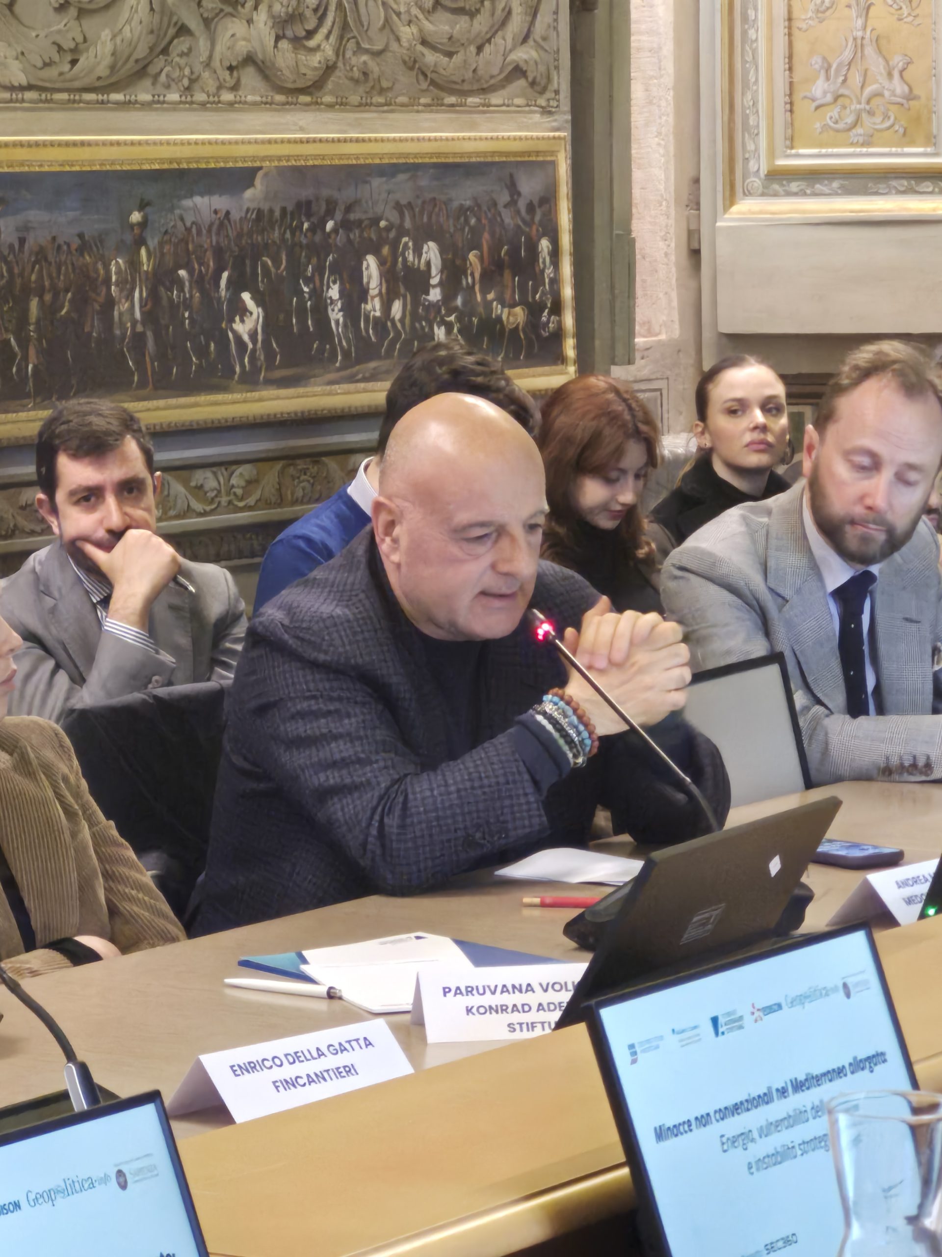 Ha presentato il progetto Matteo Mazziotti di Celso – Institut de recherche stratégique de l’école militaire e geopolitica.info. Hanno discusso e commentato i contenuti: Gianfranco Annunziata – Stato Maggiore della Difesa, Alessia Chiriatti – IAI, Enrico Della Gatta – Fincantieri, Emidio Diodato – Università per Stranieri di Perugia, Gianluigi Vassallo – MAECI, Igor Malgieri – Edison, Andrea Manciulli – MedOr Italian Foundation, Karim Mezran – Atlantic Council, Cecilia Emma Sottilotta – Università per stranieri di Perugia. Ha moderato Gabriele Natalizia – Sapienza Università di Roma, Geopolitica.info