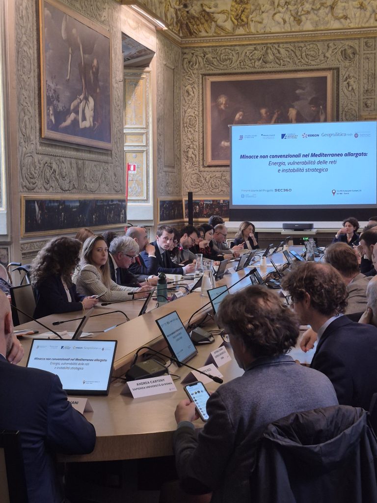 L’iniziativa, la prima di una serie di Geopolitical Briefs, ha analizzato le dinamiche di sicurezza del Mediterraneo allargato, una regione di cruciale rilevanza per l’Europa, caratterizzata da significative opportunità ma anche da crescenti fattori di rischio. In particolare questo primo incontro, è stato dedicato alle principali sfide transnazionali che attraversano l’area, come la crisi alimentare e le migrazioni irregolari, il commercio e le ricadute daziarie, le minacce alla libertà di navigazione nel Mediterraneo, la vulnerabilità delle infrastrutture critiche, la sicurezza energetica e il terrorismo. Clicca qui scaricare la ricerca integrale :