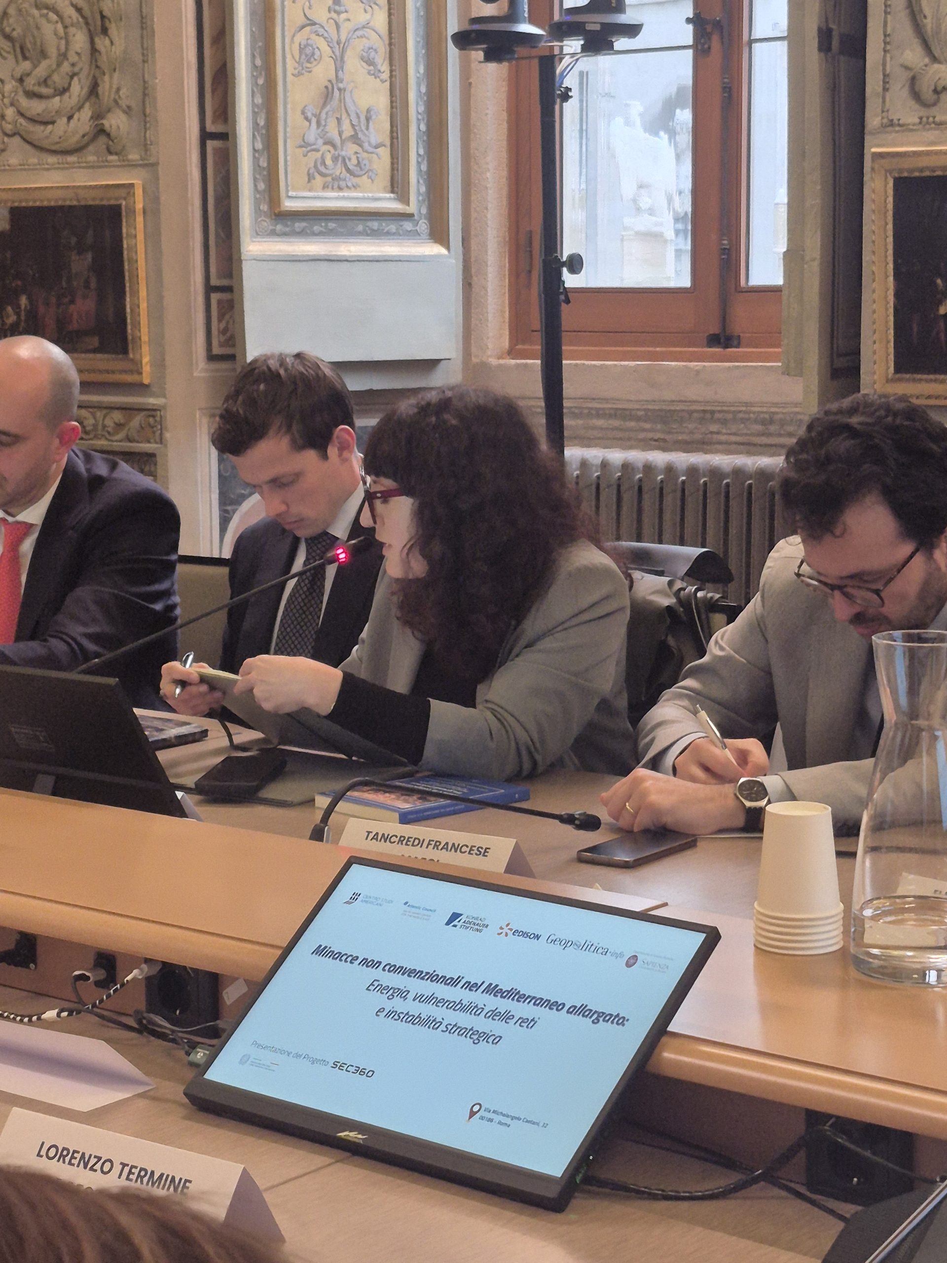 Il 30 marzo al Centro Studi Americani si è svolta la tavola rotonda per presentare il progetto SEC360 Sicurezza, Instabilità e Leve di Difesa coordinato dal Centro Studi Geopolitica.info con la collaborazione del Centro Studi Americani e dell’Atlantic Council – North Africa Initiative, e sostenuto dal DGAP del MAECI, Edison e Konrad Adenauer Stiftung.