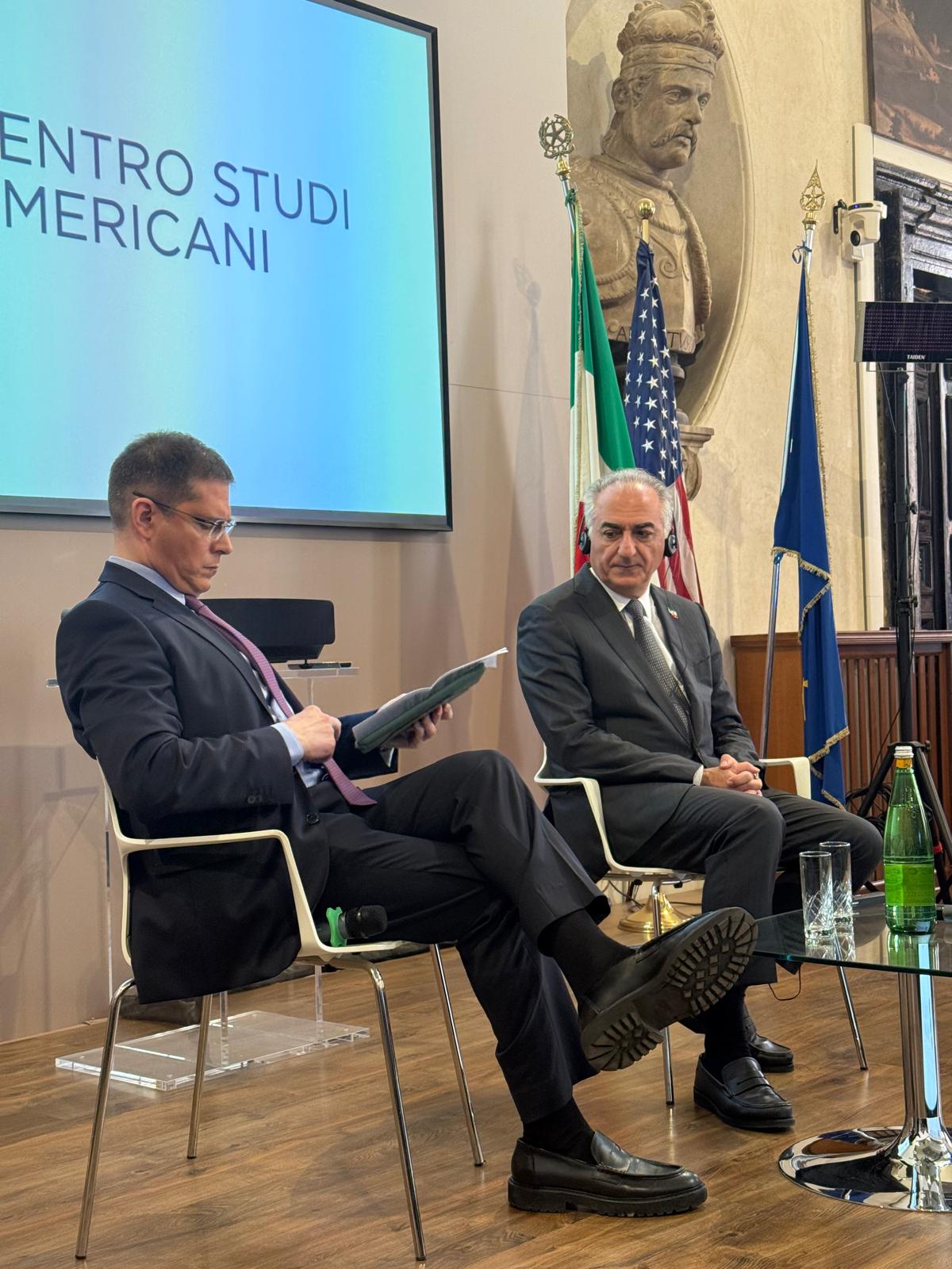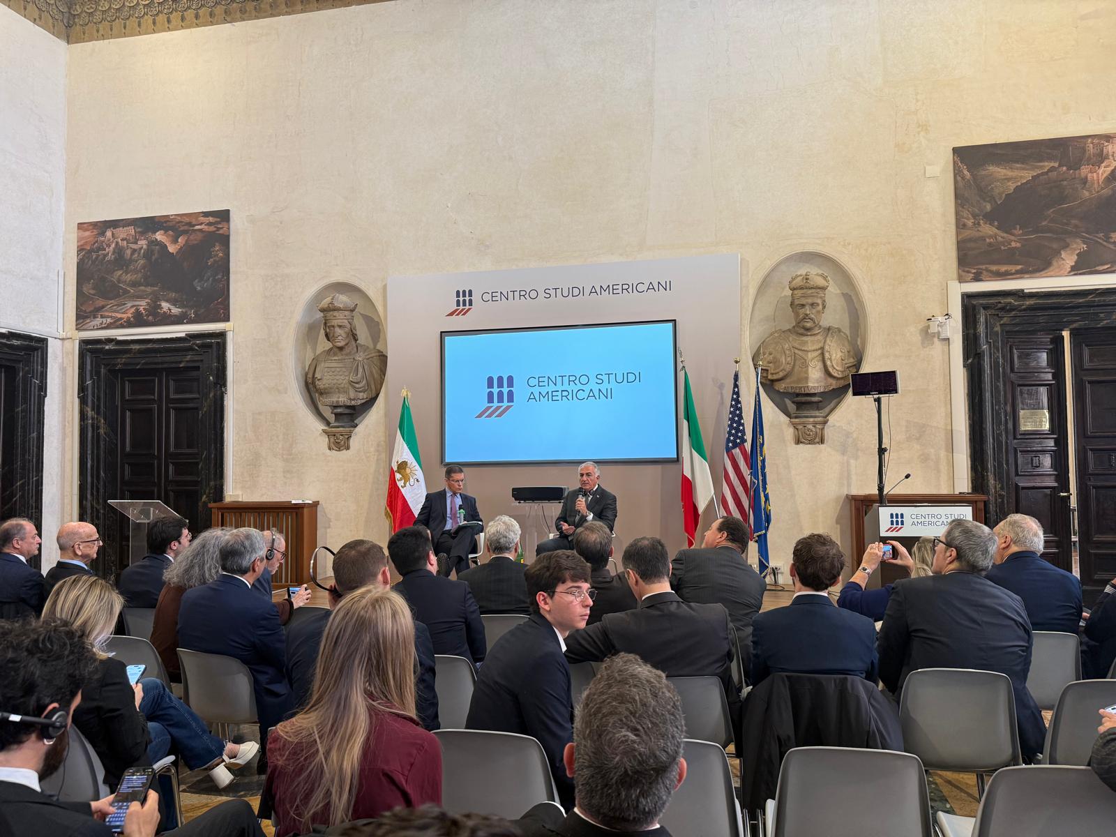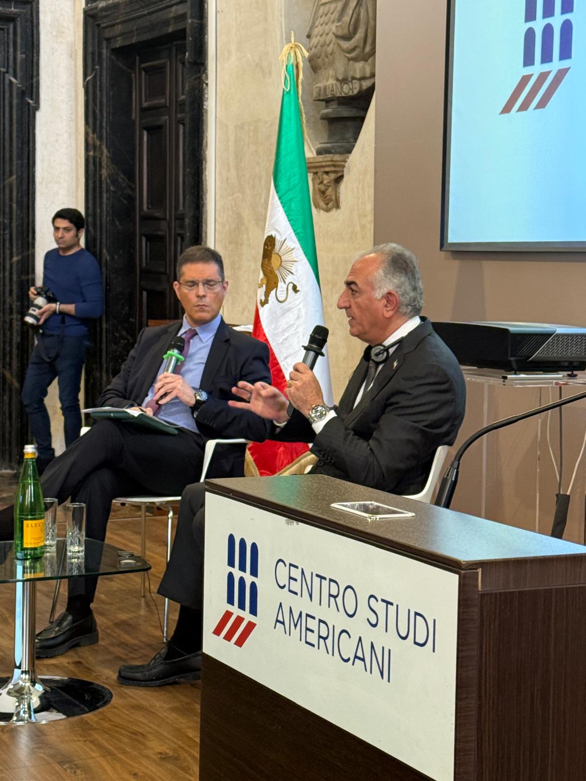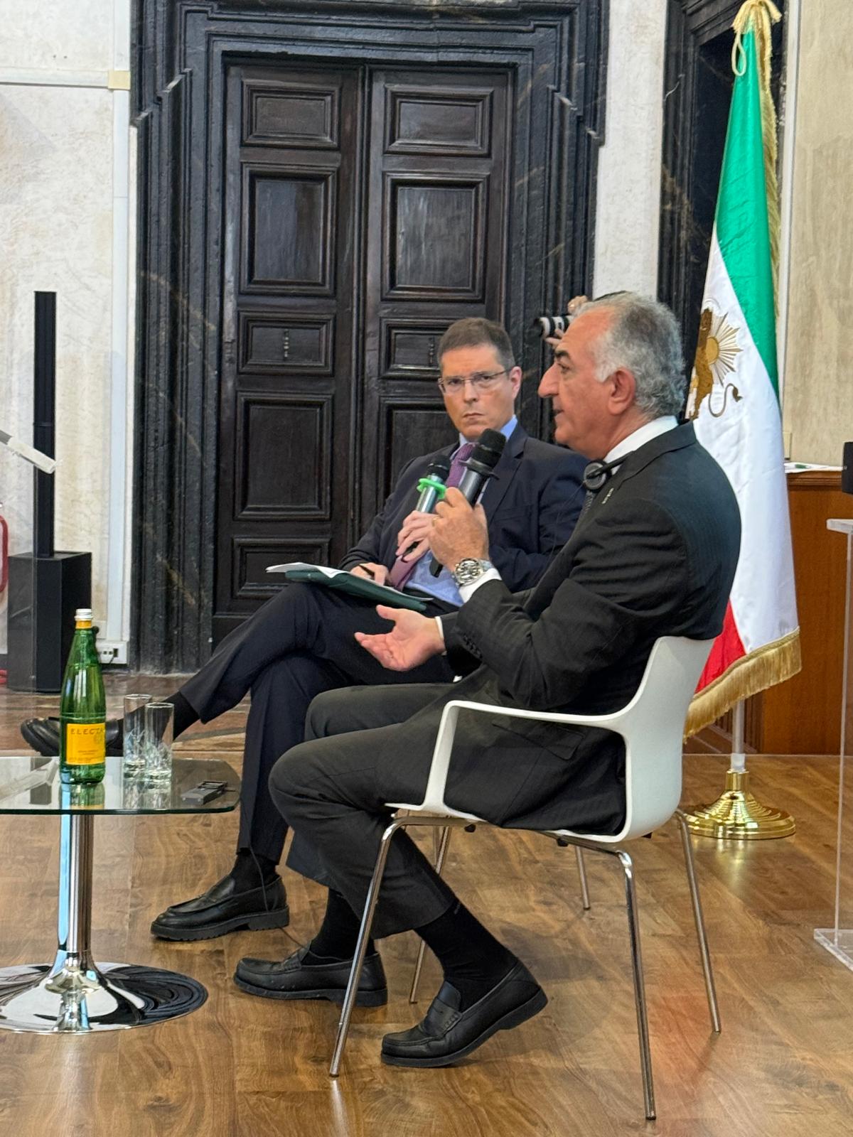 In un primo momento, Il Principe Reza Pahlavi è stato intervistato da Daniele Capezzone, Direttore de “Il Tempo”. Sono state trattate diverse tematiche di estrema attualità come le tappe per una transizione democratica del Paese, il ruolo della comunità internazionale nel sostenere la popolazione iraniana, le ripercussioni della crisi mediorientale sugli equilibri globali.