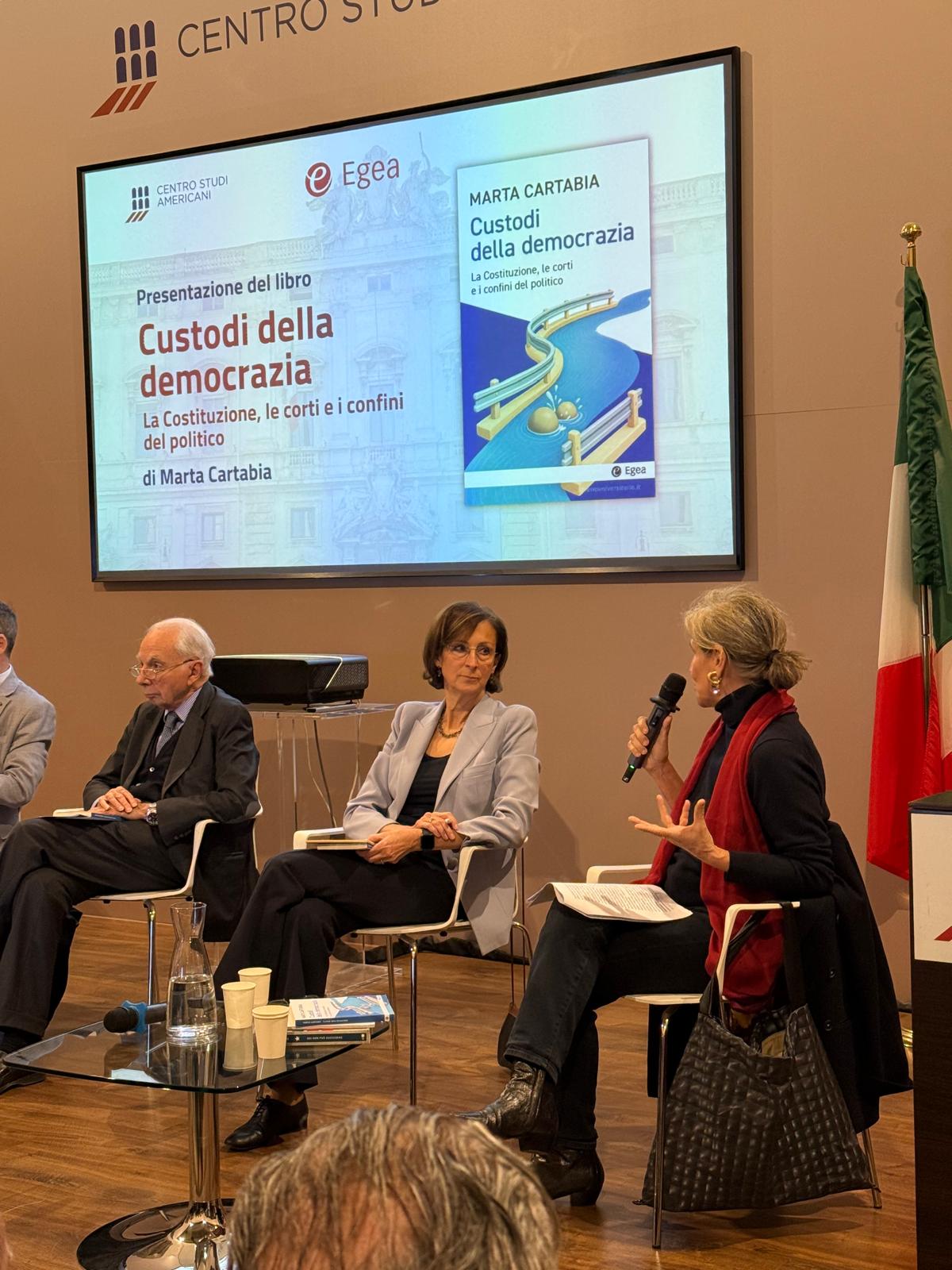 Il 18 febbraio alle 17:30 si è tenuta al Centro Studi Americani la presentazione del libro  “Custodi della democrazia. La Costituzione, le corti e i confini del politico” di Marta Cartabia, edito Egea.
