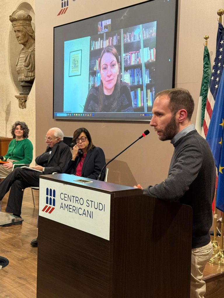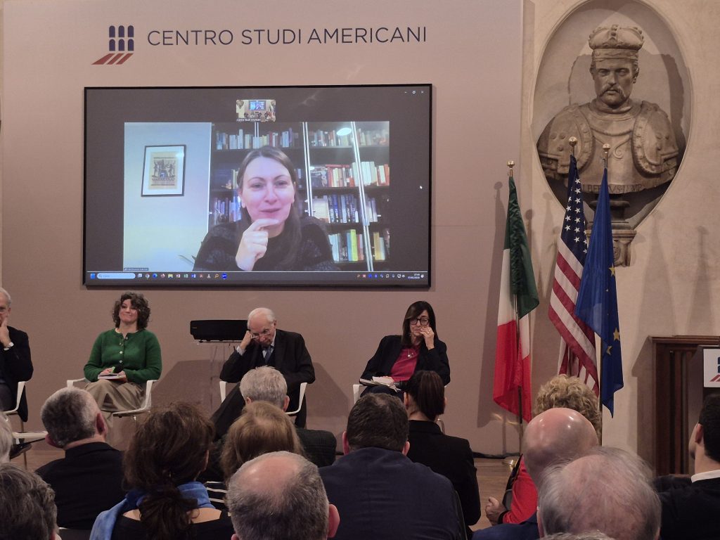 - la prima, di carattere storico, ha ospitato, dopo i saluti del Presidente del Centro Studi Americani Gianni De Gennaro, gli interventi di Giuliano Amato, Presidente Emerito della Corte Costituzionale e Presidente Onorario del Centro Studi Americani, Daniele Fiorentino, Università Roma Tre, Lauren Braun-Strumfels, Cedar Crest College, Maddalena Marinari, Gustavus Adolphus College, nonché il curatore del libro Giuliano Santangeli Valenzani, ha moderato Fiorenza Sarzanini, vice direttore Corriere della Sera;