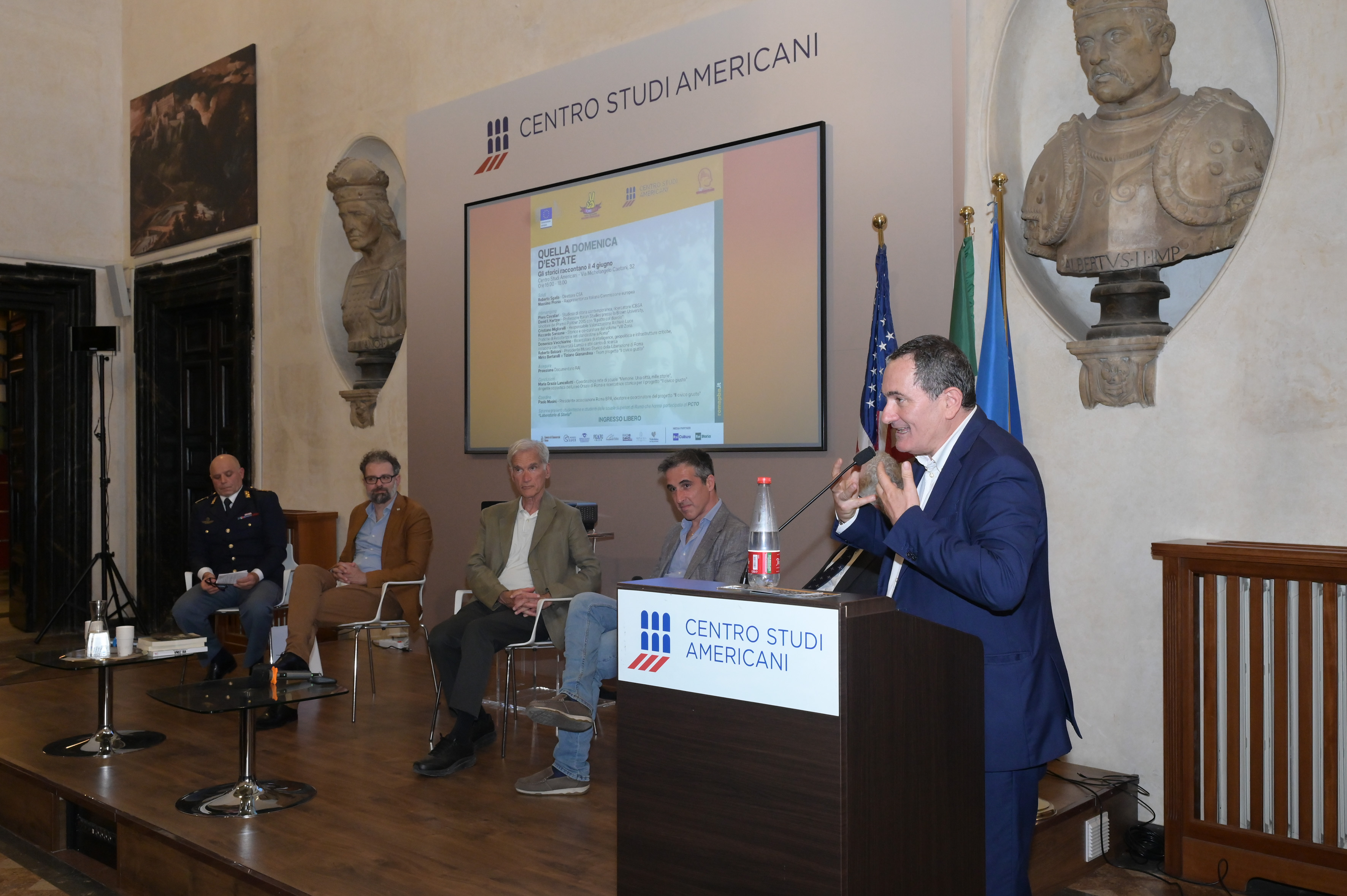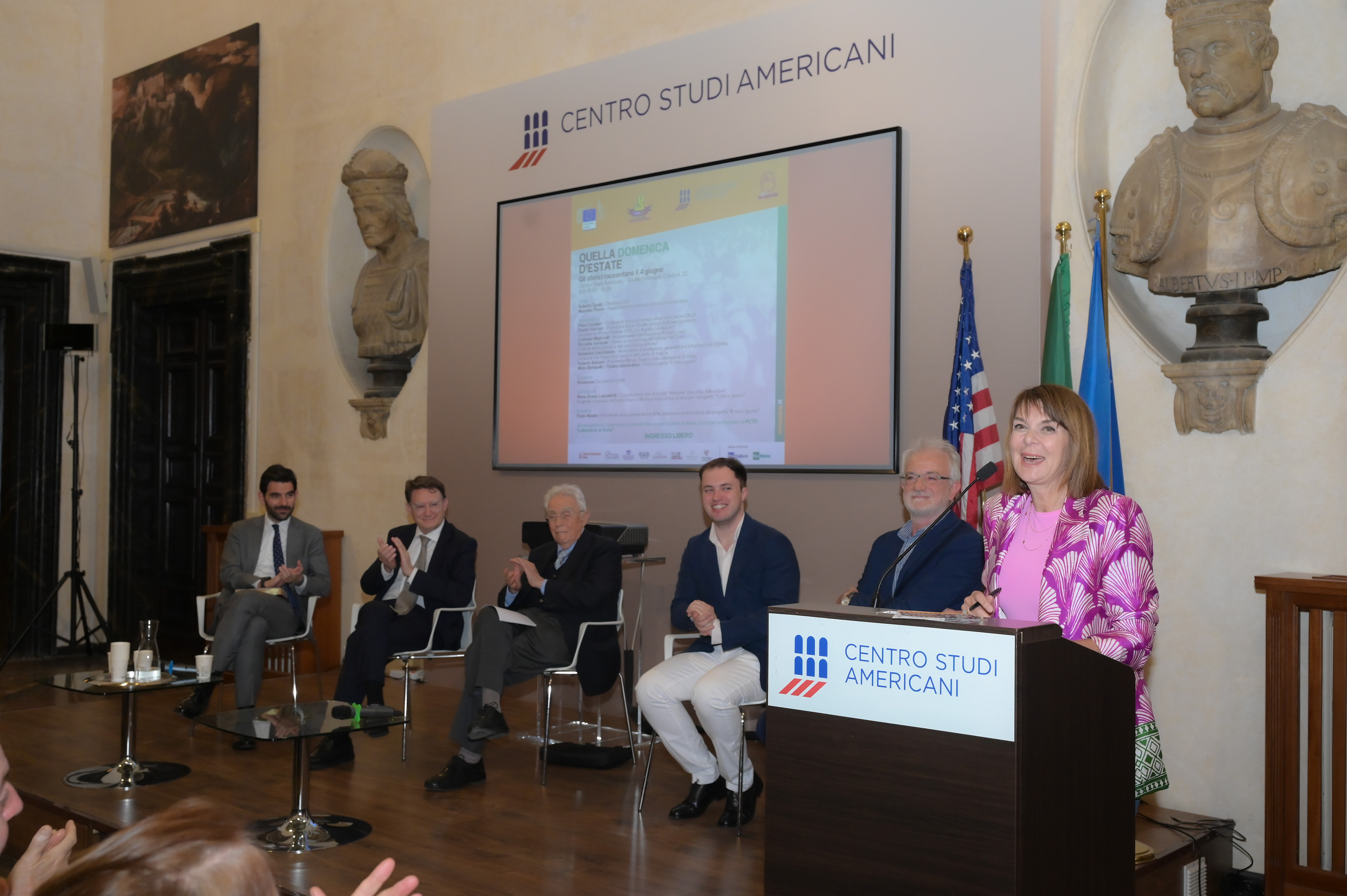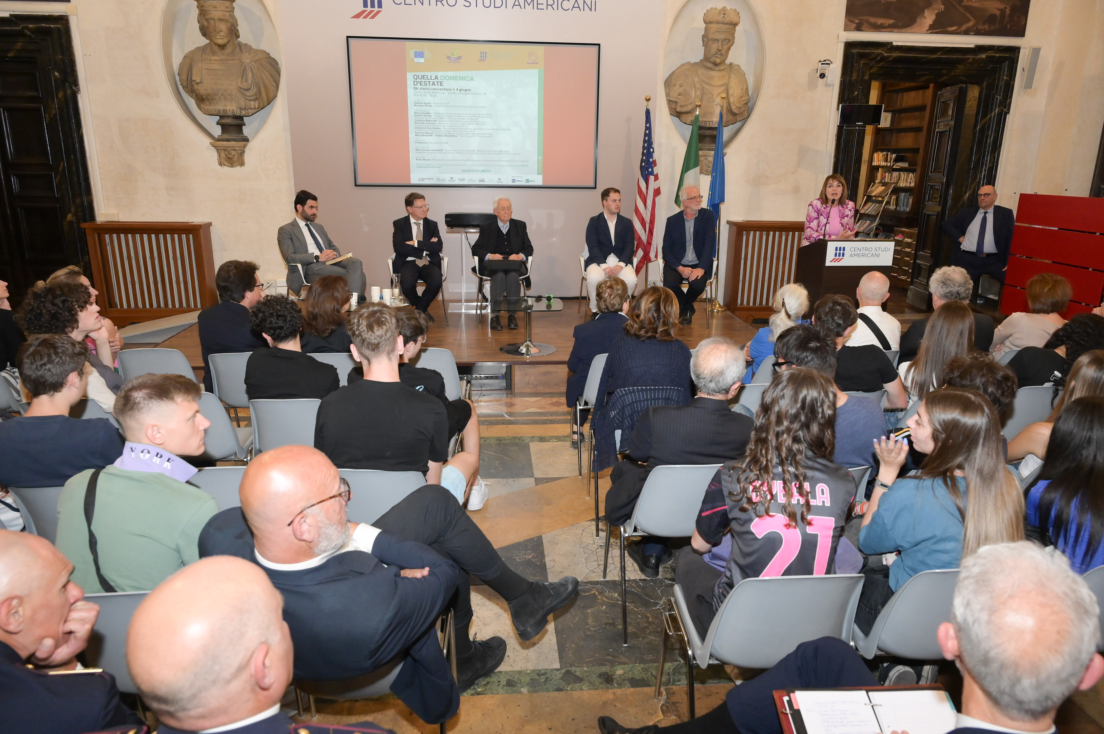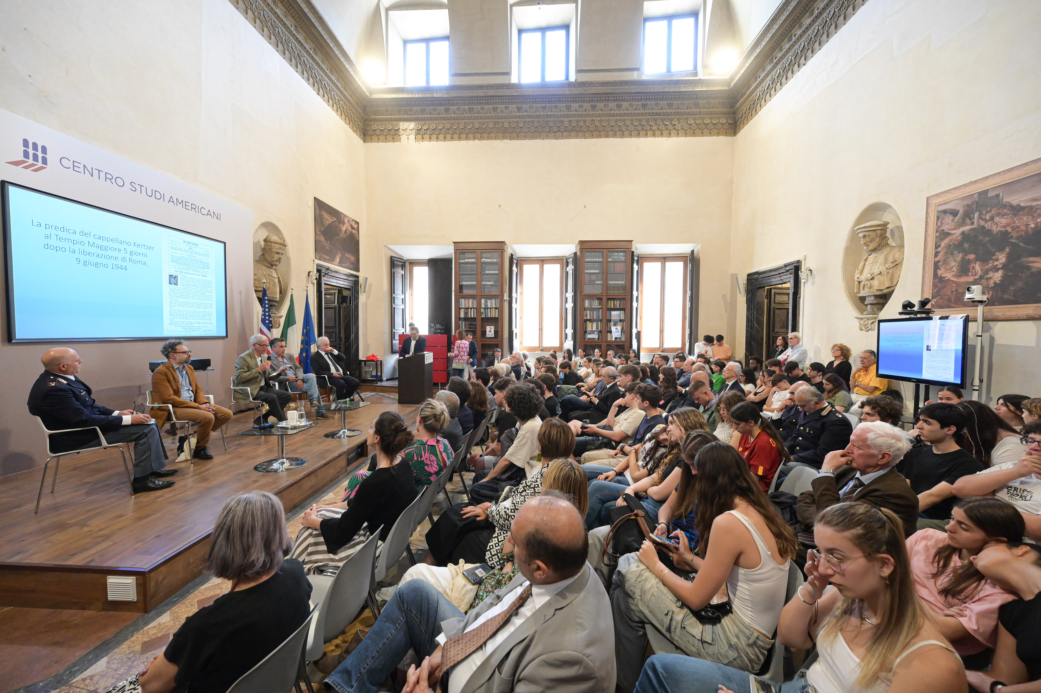 Si è tenuto lo scorso 4 giugno al Centro Studi Americani l’evento dal titolo “Quella domenica d’estate. Gli storici raccontano il 4 giugno”. L’iniziativa, organizzata in occasione dell’80° anniversario della Liberazione di Roma, ha visto la partecipazione, tra gli altri, di David I. Kertzer, docente di Italian Studies alla Brown University e vincitore del Premio Pulitzer nel 2015. Nel corso del documentario è stato proiettato un documentario RAI, media partner del Centro, che ripercorre quei memorabili eventi e l’arrivo delle truppe alleate nella capitale. Il convegno faceva parte della giornata “04 giugno 1944 – 04 giugno 2024: Roma è libera!” organizzata dall’associazione Roma Best Practices Award, in collaborazione con vari partner istituzionali tra cui la Rappresentanza in Italia della Commissione europea.